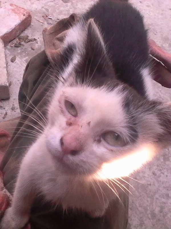 Пока я работал на стройке, к нам прибежала маленькая кошечка. Ее бросили и не кормили. Она была больная, с слипающимися глазами, с блохами, и глистами, вся чахлая.