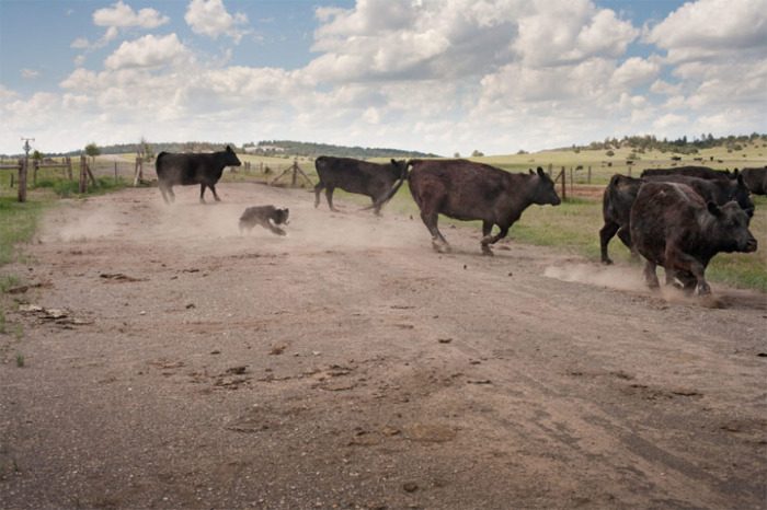 13-летниий пастух, несмотря на преклонный возраст, все также с упоением гоняется за коровами.
