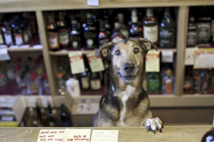 Хозяева часто берут 10-летнего домашнего любимца на работу в небольшой магазин.