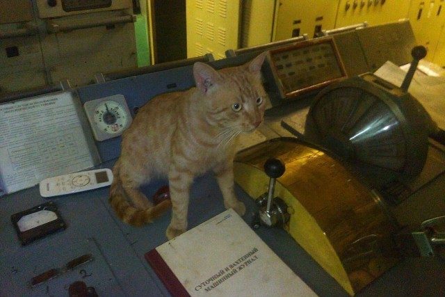 Не меньше удивился экипаж ремонтного судна, когда обнаружил на борту непрошенного гостя — рыжего кота с удивленными, как две тарелки, глазами.