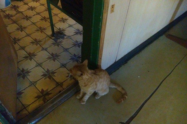На судне котофей и поселился, периодически совершая променады на берег и крутя любовь с местной кошкой Марусей.