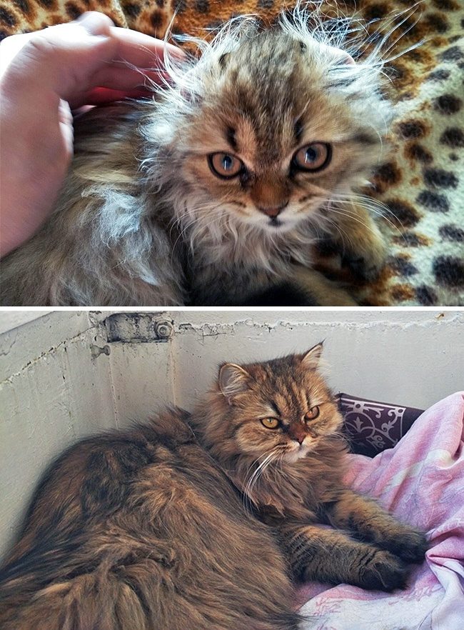 Разница между фото — 12 месяцев. Кажется, будто это два разных кота