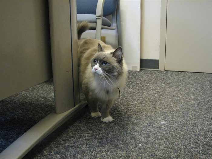 Каждый из усато-полосатых менеджеров по работе с клиентами каждый божий день, без прогула, встречает утром клиентов, сидя на столе администратора, с самым благодушным видом, как бы невзначай, проверяет содержимое их багажа и очень вежливо проводит гостей в их номера, если не уверена, что они смогут найти сами дорогу.