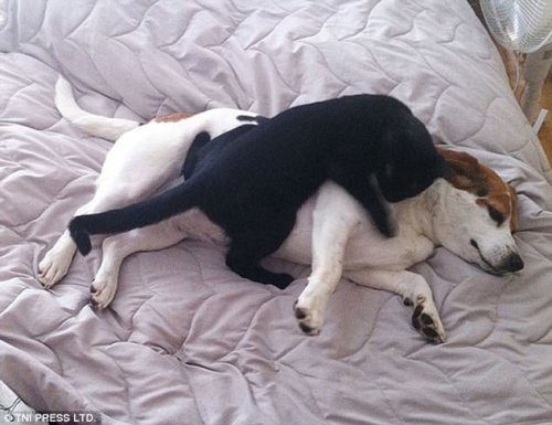 Кошки, которые любят спать на собаках