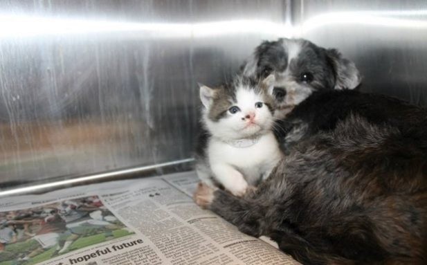 Собака, которая рисковала жизнью, чтобы спасти крошечного котенка