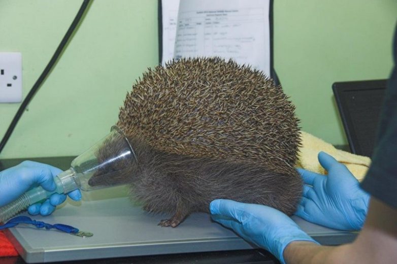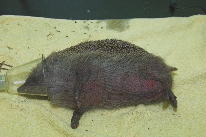 Для того чтобы спасти найденного ежа, ветеринары сделали у него на спине четыре сантиметровых разреза, через которые выходил воздух. Их придется оставить открытыми на несколько дней, пока не восстановятся травмированные легкие, иначе ежа снова раздует.