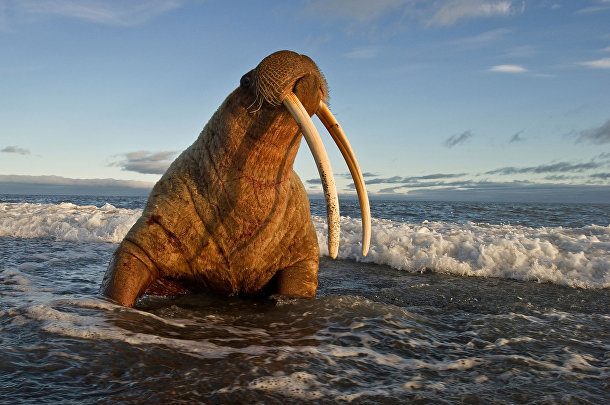 2. Остров Врангеля стал домом для самой большой в мире популяции тихоокеанских моржей (Odobenus rosmarus). В годы безо льда от 80 000 до 100 000 моржей собираются здесь на прибрежных лежбищах.