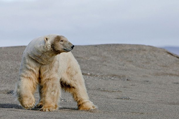 8. Полярный медведь прочесывает один из множества пляжей на острове Врангеля, возможно, в поисках какой-нибудь выброшенной на берег туши.