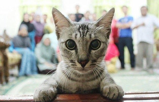 Как известно, кошки не в состоянии допустить, чтобы в доме хоть что-нибудь происходило без их участие. А уж если вы хотите сфотографироваться — будьте всегда готовы к тому, что ваш кот вломится в кадр и испортит ваш портрет!