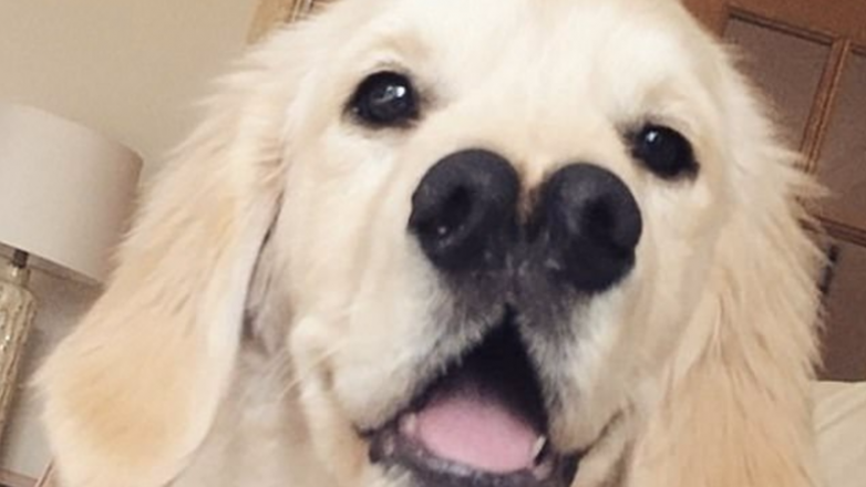Золотистый ретривер Уоллис родился с расщеплением неба, из-за чего нос у него раздвоенный. Именно эта особенность в прошлом году привлекла к Уоллису внимание Ланы Калли, и женщина приютила собаку.