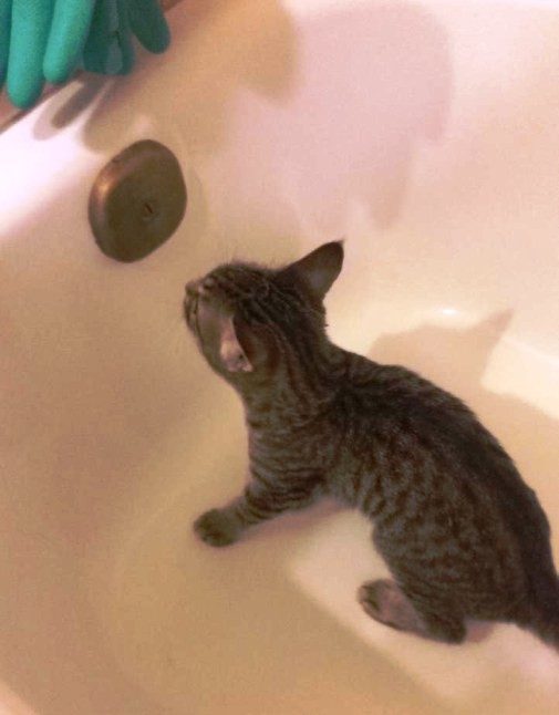 В ванной сидел вокально одарённый котёнок, который мяукал и мяукал изо всех сил. «Я никогда раньше не видел этого котёнка и не мог понять, как он оказался в моём доме. Да, у меня имеется специальная собачья дверца, но она расположена слишком высоко от земли – детёныш не смог бы дотянуться. Мне кажется, это Кросби провёл малыша внутрь в моё отсутствие.