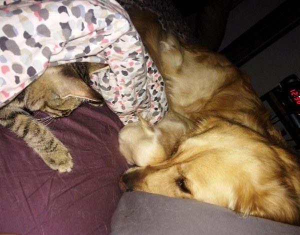 Трогательно… мои собаки своих кошек в обиду не дают.