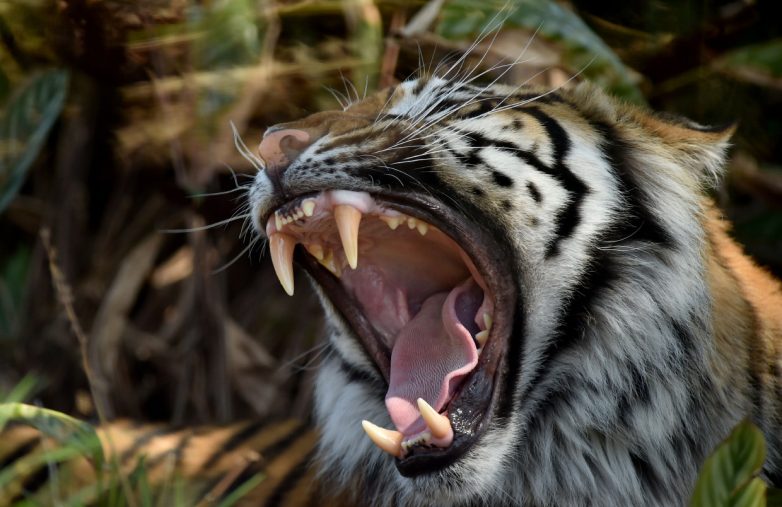 Спать охота. Клыкастый суматранский тигр в зоопарке Таронга в Сиднее.