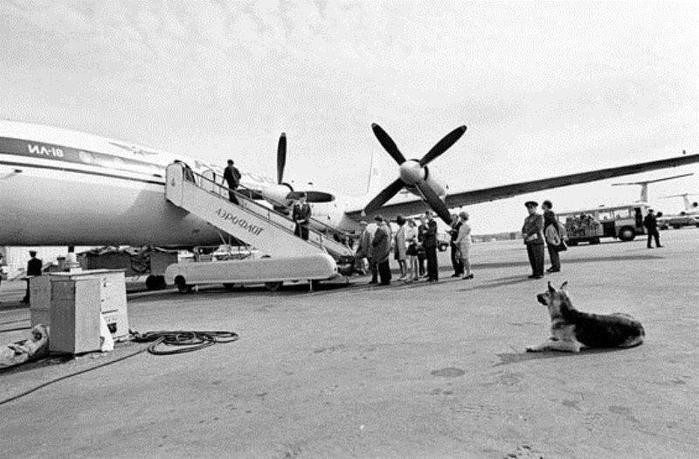 Первое время она бегала за каждым взлетающим «Ильюшиным» по взлетной полосе. Здесь ее и увидел командир корабля «Ил-18» Вячеслав Александрович Валентэй. Он заметил бегущую рядом с бортом собаку, и хотя у него во время взлета было много других дел, передал аэродромным службам: «У вас на полосе овчарка, пусть хозяин заберет, а то задавят». Потом он видел ее много раз, но думал, что это пес кого-то из портовых служащих и что собака живет рядом со аэродромом. Он ошибся, собака жила под открытым небом, на аэродроме. Рядом со взлетной полосой, откуда было видно взлетающие «Илы». Позже, спустя некоторое время, она, видимо, сообразила, что уходящие в небо машины не принесут ей встречу, и перебралась ближе к стоянке. Теперь, поселившись под вагончиком строителей, прямо напротив здания аэровокзала, она видела приходящие и уходящие «Ил-18». Едва подавали трап, собака приближалась к нему и, остановившись на безопасном от людей расстоянии, ждала.