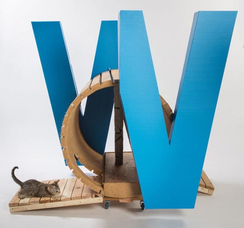 С целью привлечения средств для некоммерческой организации по защите бездомных кошек, группа архитекторов разработала дизайнерские кошачьи домики, который предлагают четвероногим животным и пространство для активных игр, и уютные уголки для отдыха.