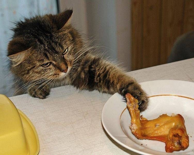 Например, про брызгание в жрущего кота неприятно мокрой водой и кидание в него же металлической баночки с гремящими монетами. По версии специалистов брызги и шум не нравятся котам настолько, что они сразу перевоспитываются. Некоторые аж книксены делать начинают. Но очень важно брызгать и кидать незаметно, чтобы кот не понял, кто пакостит, и не отшлёпал вас укоризненно украденной у вас же куриной лапой.