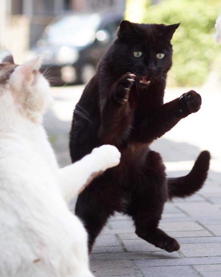Вы, наверное, уже и сами замечали, как проворно ваш кот умеет взбираться по ковру, лазить по деревьям и забираться в самые неожиданные места. Японский фотограф Хисаката Хироюки (Hisakata Hiroyuki) доказал, что кошки настоящие прирожденные ниндзя, являющиеся настоящими мастерами боевых искусств.