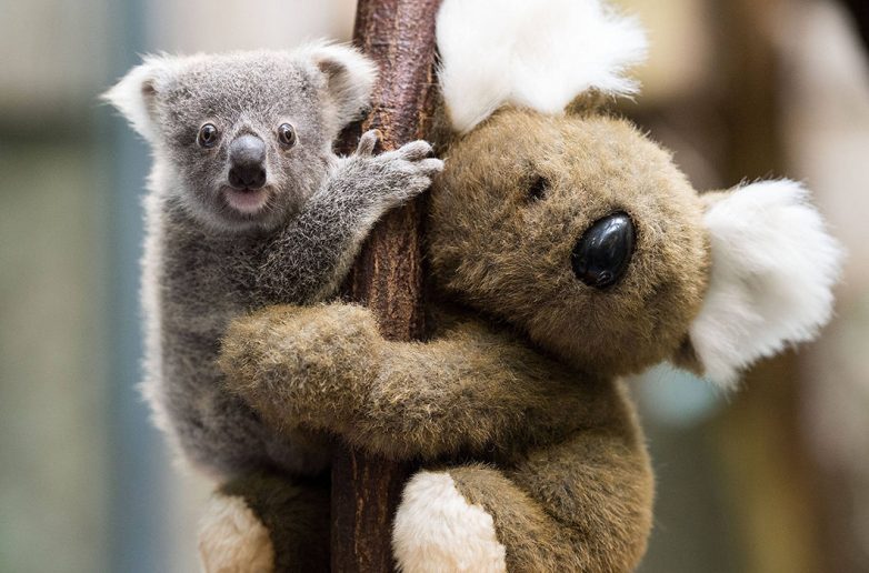 Почти полгода после рождения детеныш коалы живет у мамы в сумке, а затем еще полгода путешествует на ее спине, знакомясь с окружающим миром