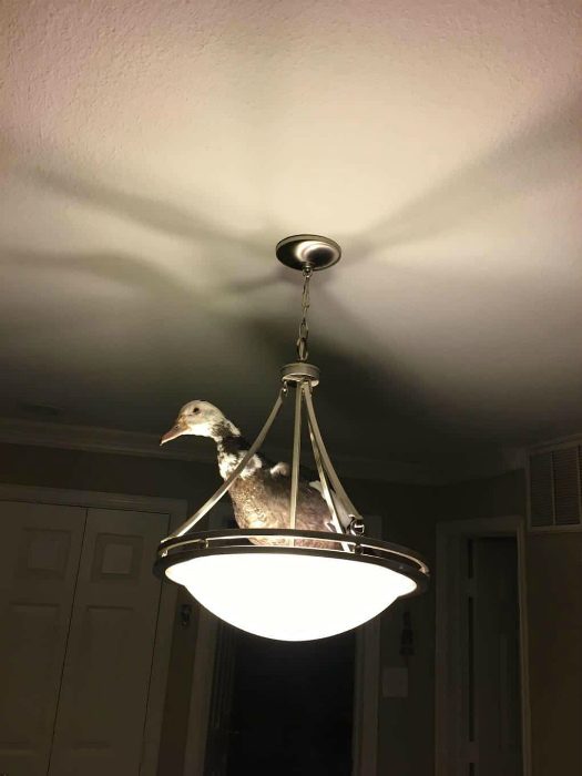2. «Как объяснить птице, что люстра — не качели!»