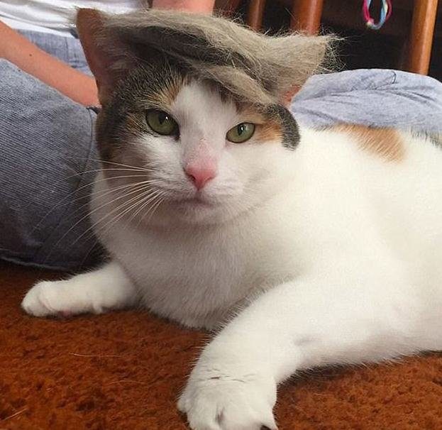 Хозяева собирают кошачью шерсть, делают из них накладку-паричок и прилаживают коту между ушами. Некоторые сопровождают прическу костюмом «под Трампа» — к примеру, с галстуком цвета «вырви глаз».