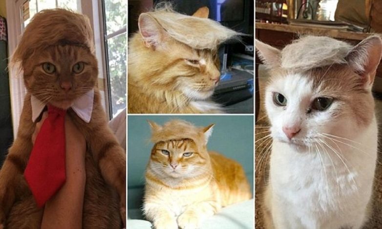 Американцы, а вслед за ними и жители других стран и континентов, все активнее включаются в сетевую вирусную акцию «Причеши кота под Трампа!» Люди делают своим домашним любимцам шерстяные накладки в форме знаменитой челки президента США и выкладывают их фото в интернет. Посмотрите — как, похожи?