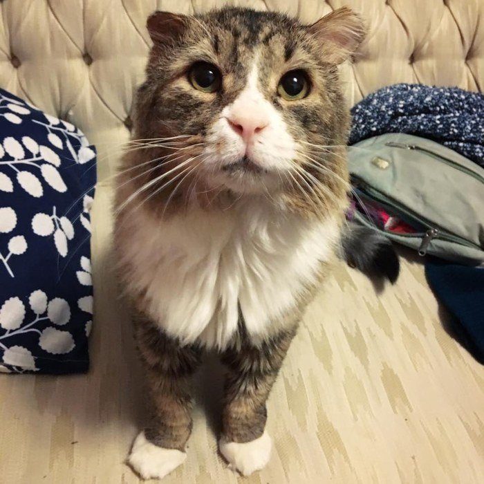 «Он было в шоке от таких перемен в его жизни. Улица оказалась очень сложным местом для него: он потерял несколько зубов, получил множество шрамов и обморозил ушки. Но он очень сильный кот»