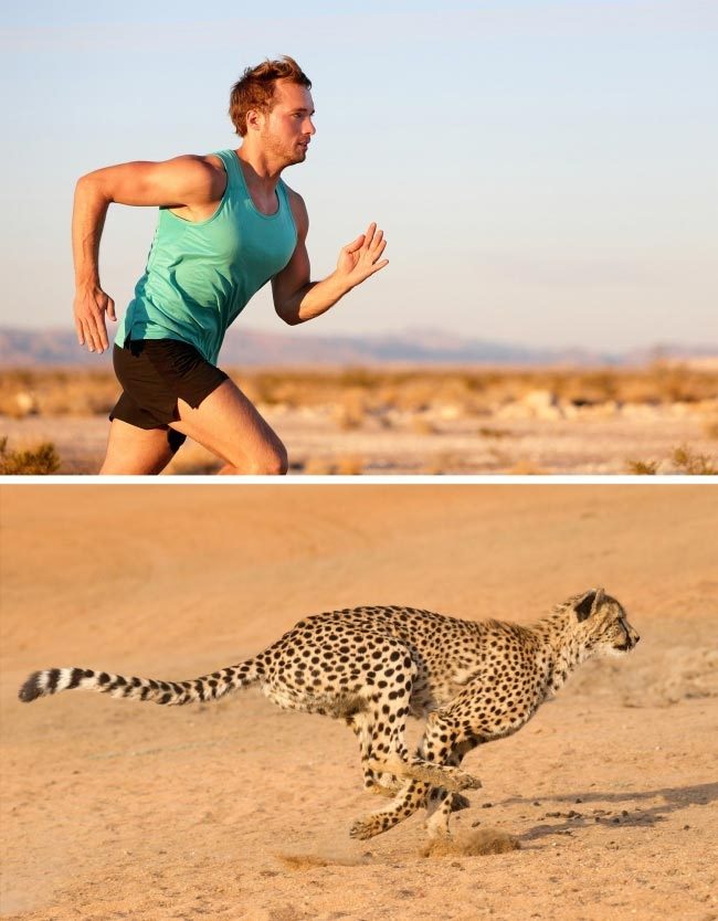 В мире животных, чтобы поймать добычу или чтобы ею не стать, нужно уметь быстро бегать. Гепард, например, способен развивать скорость 120 км/ч. В разумных пределах бег — это всегда польза и здоровье (если у человека нет болезней и противопоказаний). Это лучшее лекарство от депрессии, нервного напряжения и других «прелестей» современной жизни. Поэтому учитесь у животных. Если хотите сохранить здоровье в этом сумасшедшем мире, найдите время для пробежек.