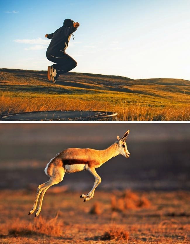 В мире животных, чтобы поймать добычу или чтобы ею не стать, нужно уметь быстро бегать. Гепард, например, способен развивать скорость 120 км/ч. В разумных пределах бег — это всегда польза и здоровье (если у человека нет болезней и противопоказаний). Это лучшее лекарство от депрессии, нервного напряжения и других «прелестей» современной жизни. Поэтому учитесь у животных. Если хотите сохранить здоровье в этом сумасшедшем мире, найдите время для пробежек.Прыгаем как антилопа