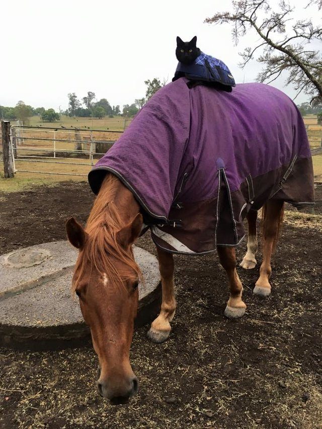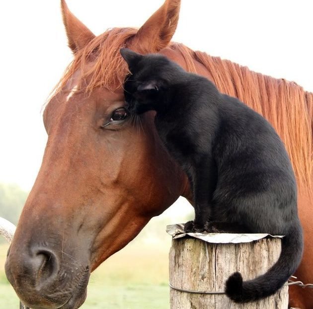Дружба застенчивого кота и жизнерадостной лошадки