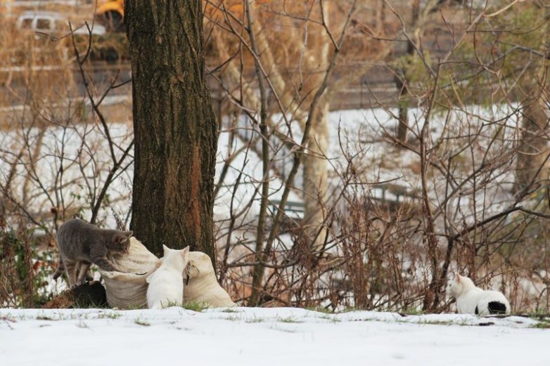 Каджиты делят добычу в парке Морнингсайд, Нью-Йорк