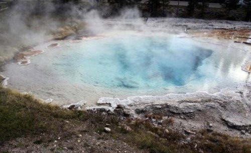 Мужчины припарковались возле источника Селестина (Celestine Pool). На первый взгляд он кажется заполненным ярко-синей, освежающей водой. На самом деле, это горячий источник, температура в котором составляет более 93 градусов по Цельсию.