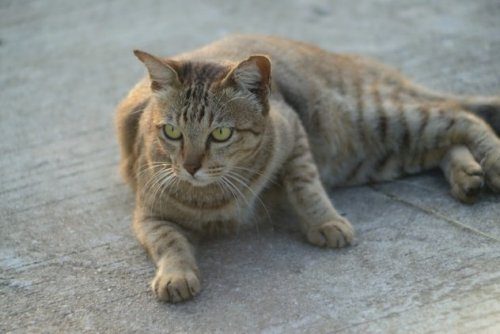 У нашего дома жила маленькая кошечка. Когда не было родителей, я брала ее к нам в квартиру ночевать и кормиться.