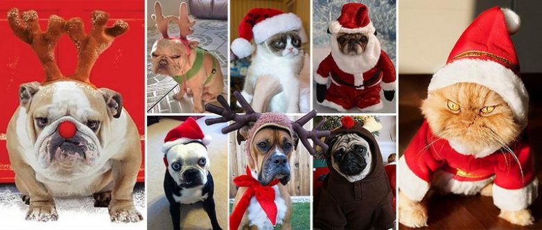 Сегодня нам поднимут настроение забавные животные в рождественских костюмах, которые, судя по их мордам, не очень рады этим нарядам.