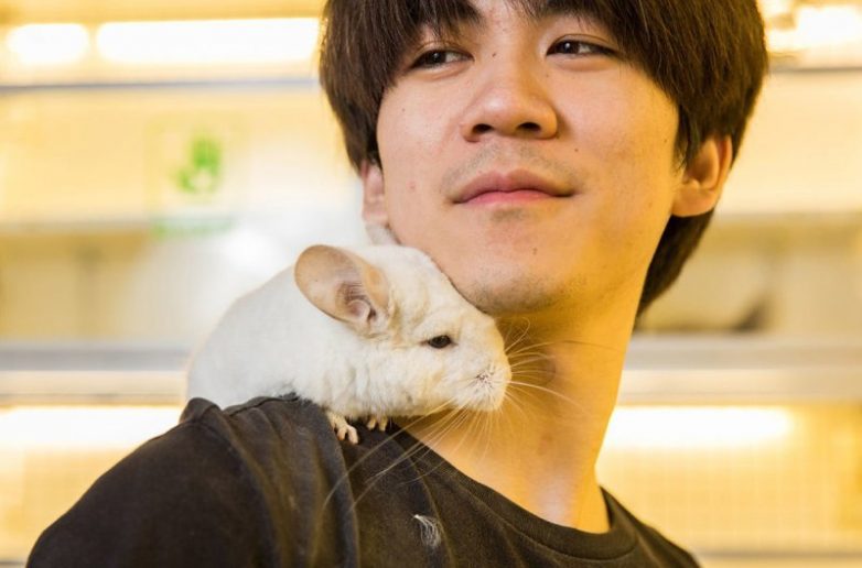 25-летний Цзя Жуй со своей короткохвостой шиншиллой. Шиншиллы обитают в горных районах Южной Америки; из-за массовой охоты за их ценным мехом занесены в Красную книгу