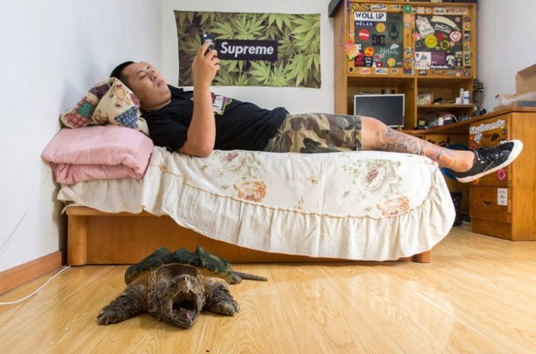 25-летний Лю Чжаобэй с грифовой черепахой. Вид, обитающий в юго-восточных штатах США, занесен в Красную книгу. Лю начал коллекционировать животных в детстве, и теперь у него более 30 различных лягушек, три аллигатора, множество змей и черепах