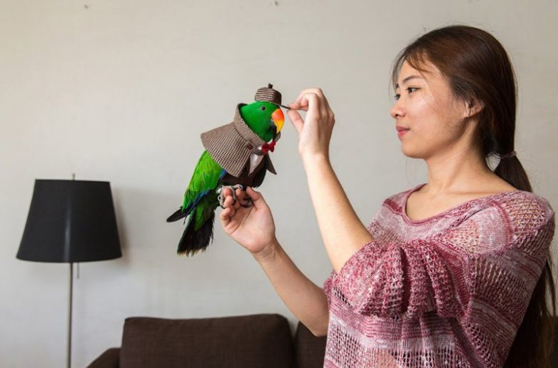 27-летняя Ян и ее нарядный попугай. Девушка уволилась из СМИ и основала свою компанию по изготовлению и продаже костюмов для попугаев, спрос на которые растет с каждым годом