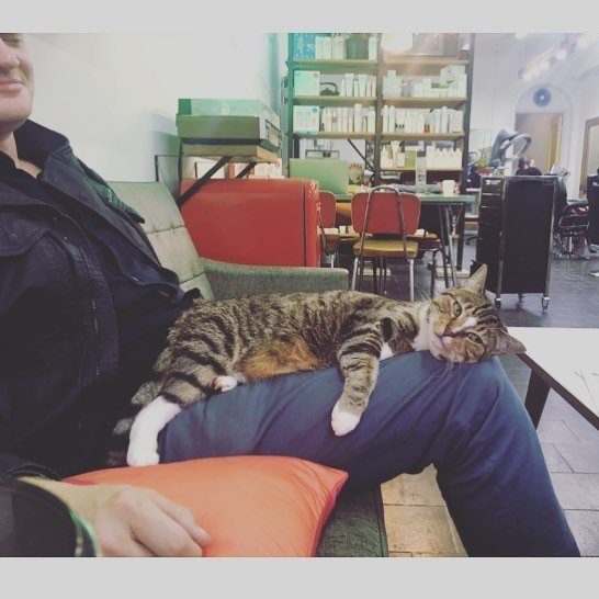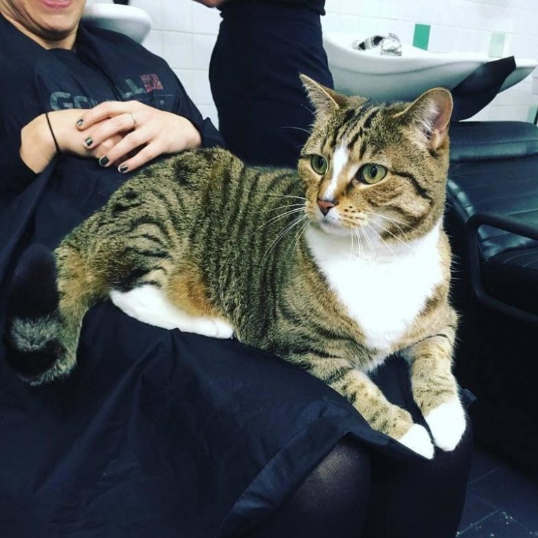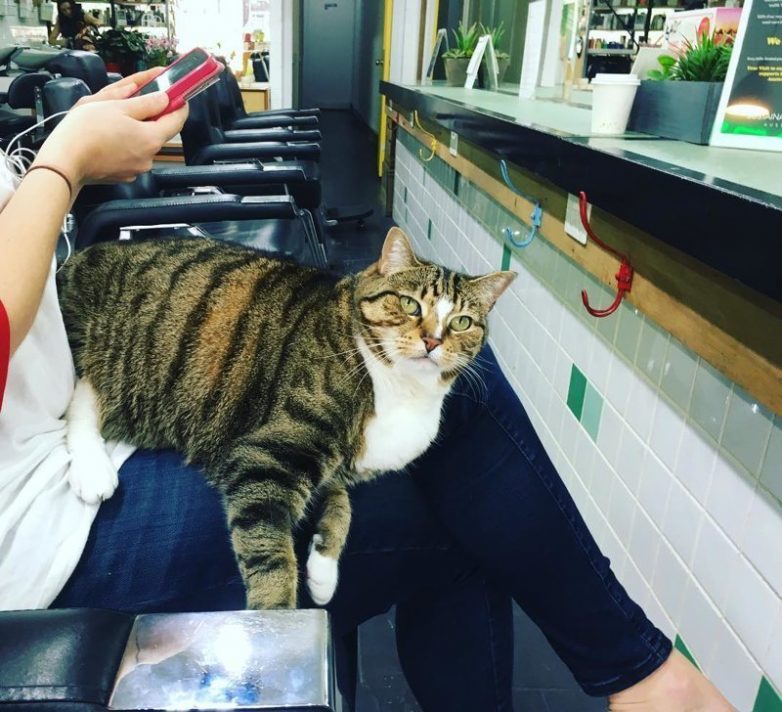 В её обязанности входит ластиться на коленках у клиентов, пока другие сотрудники салона делают тем причёски. И она справляется на отлично!
