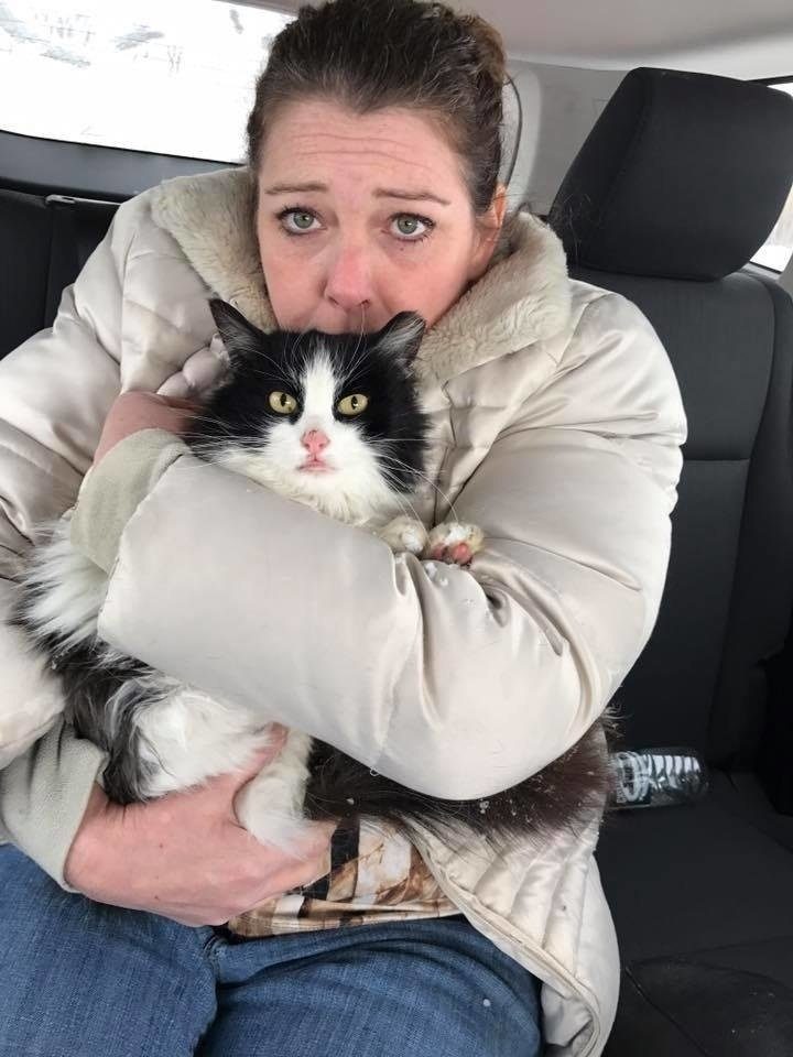 “Кошка словно окаменела, она дрожала и нуждалась в немедленной помощи. Сложно представить, как она оказалась совершенно одна у трассы в такую погоду”, – говорят ребята, которые ее нашли!
