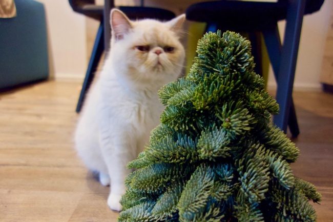 Кот не понимает, зачем ставить елку, если по ней нельзя лазать