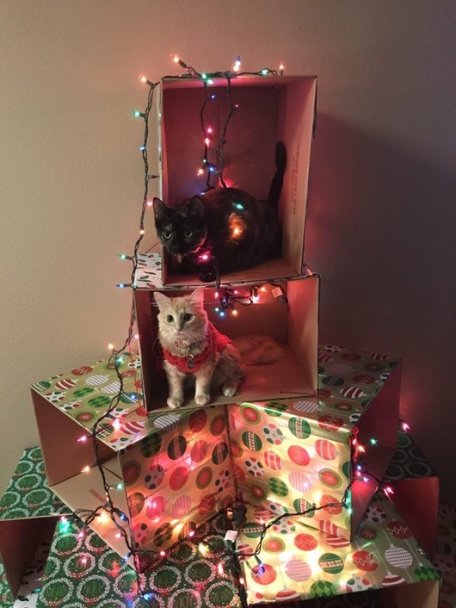 «А я решил заранее сдаться и сделал елку специально для кошек»