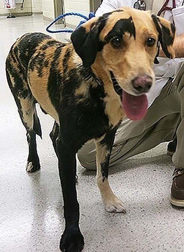 Собаки часто рождаются с розовыми носами, однако во взрослом возрасте они обычно приобретают черный окрас. А у этого пса нос так и остался щенячьим.
