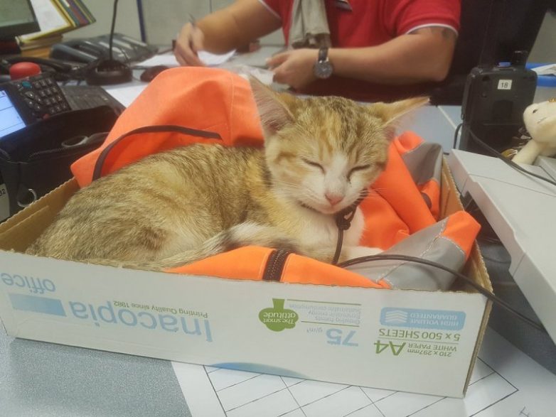 «Этим утром на вокзале Вуавр зашел вот такой пассажир. Котенок, который уже прошел стажировку у машиниста, будет рад найти свою семью».