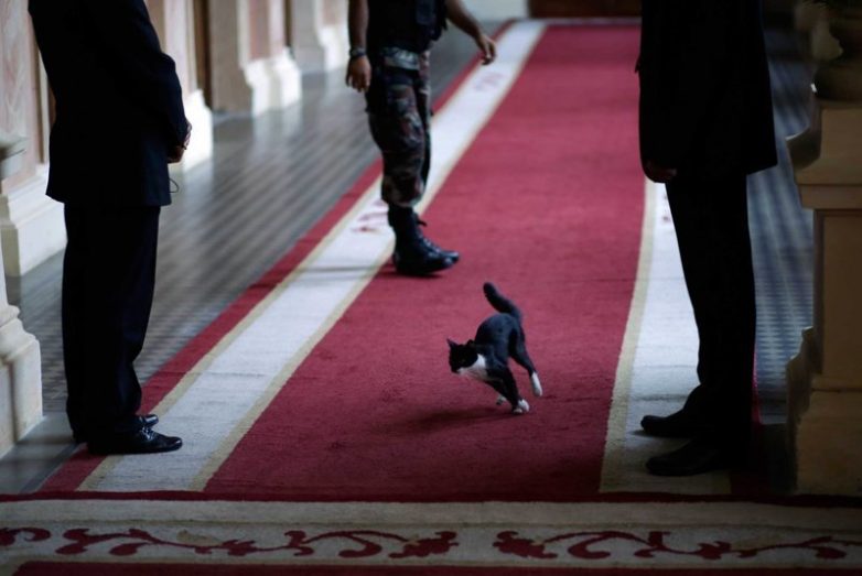 Кошка появляется в доме правительства Парагвая во время ожидания высокопоставленного гостя