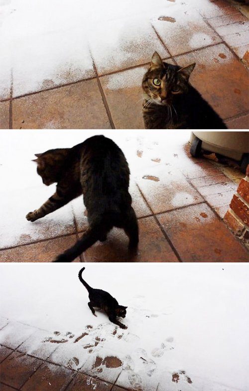 Причём, их реакция на первый снег более многогранна, варьируясь от лёгкого удивления и наполняющей радости до откровенного страха и полного недовольства.