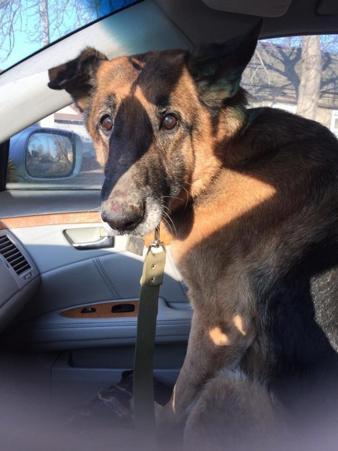 Как только Анастасия открыла автомобиль, собака тут же запрыгнула внутрь. Зоозащитница повезла животное домой. На ухе собаки есть клеймо, что только подтверждает догадки о том, что пёс был служебным!