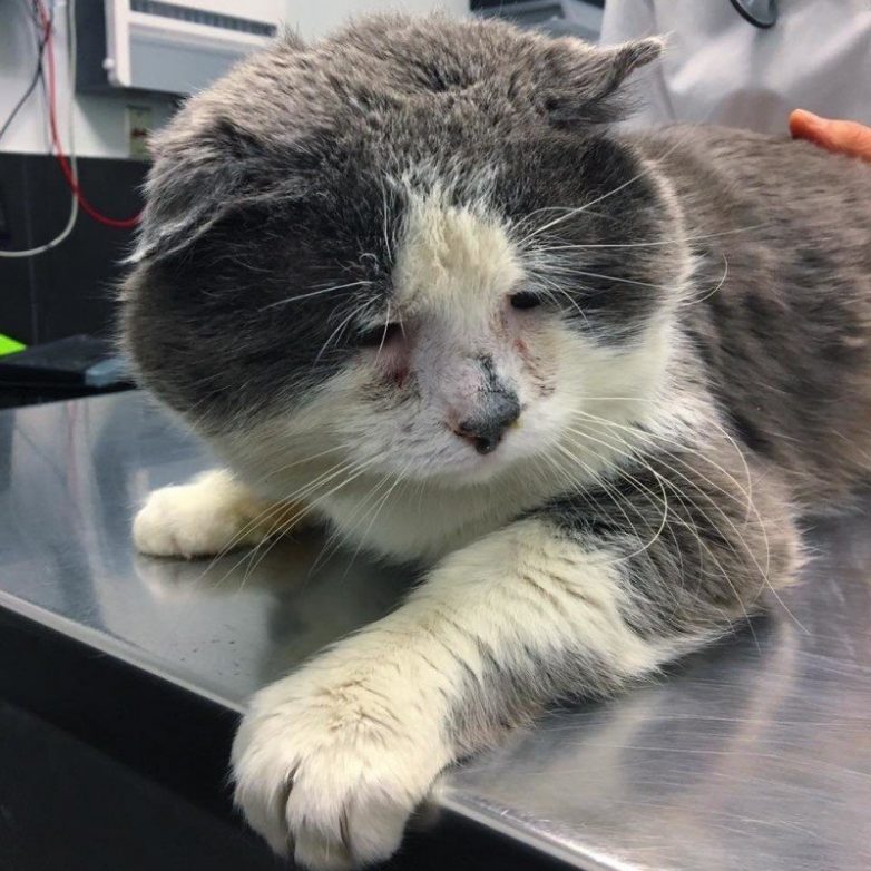 “Его нос был забит слизью и коту было трудно дышать. У него также нашли множество паразитов и ушных клещей!“, – рассказывают они.
