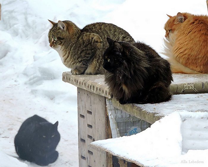 Суровые сибирские кошки в ожидании весны.
