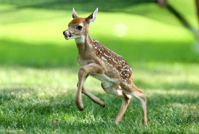 Олененок на поле для гольфа.