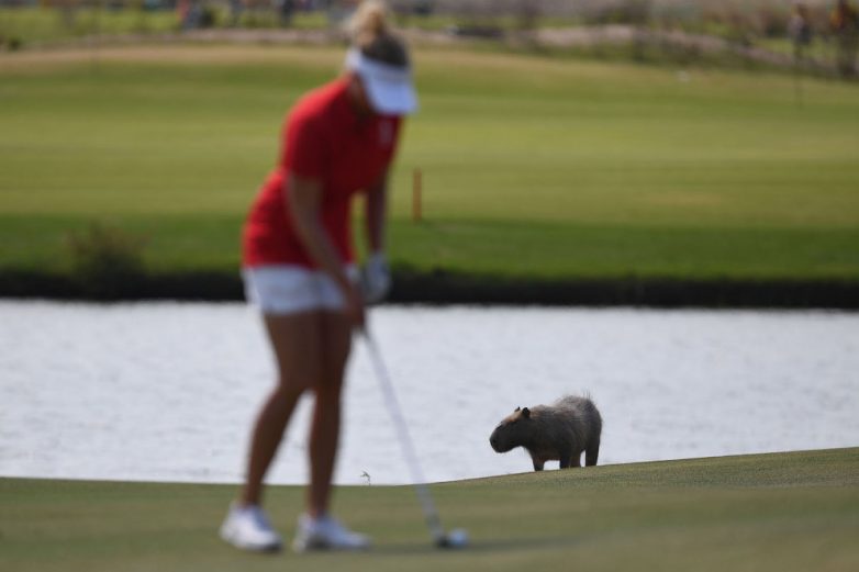 Много развелось гольфистов. Вот и капибара тут.