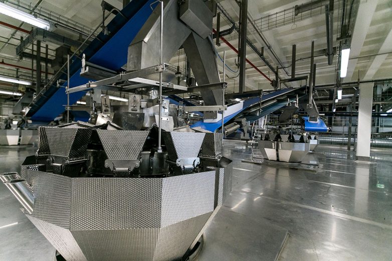 Сырье поступает в холодный цех. Курица, индейка, субпродукты, мясо и рыба проходят проверку качества в лаборатории. Здесь же сырье перерабатывают в фарш и пускают по закрытому конвейеру в другой цех.